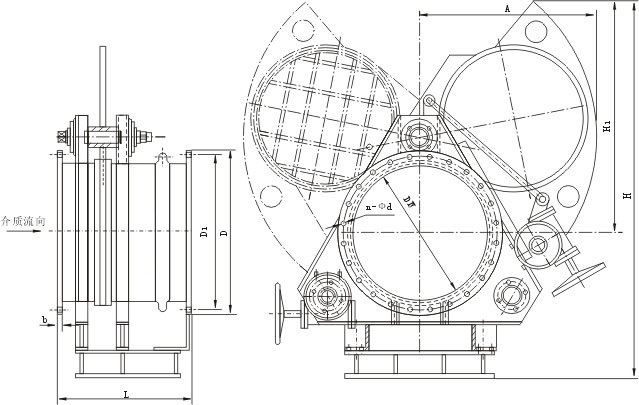 F343CX蝸輪扇形眼鏡閥又稱蝸輪扇形盲板閥,蝸輪翻板閥,蝸輪扇形閥,由左閥體、中閥體、右閥體、扇形盲板、絲桿螺母、不銹鋼補償器、兩個蝸輪傳動機構(gòu)等組成。它是通過三根絲桿連成一體,并把三個閥體分別固定在底座上,構(gòu)成一個剛性結(jié)構(gòu)體。中閥體與右閥體用不銹鋼膨脹管連接,左、中閥體分別用三根兩端帶左右梯形螺紋的絲桿連接,將三根絲桿同時作正向(或反向)旋轉(zhuǎn),則左、中兩閥體得到壓緊(或分離)。三根絲桿中上面一根絲杠中間裝有盲板,盲板繞該軸心旋轉(zhuǎn)。下面兩根絲桿在同樣的部位上安裝有盲板的定位塊,盲板旋轉(zhuǎn)時可以防止盲板漂移,避免密封圈擦傷,其中一根絲桿上裝有蝸輪傳動機構(gòu),實現(xiàn)松開夾緊閥體的目的。